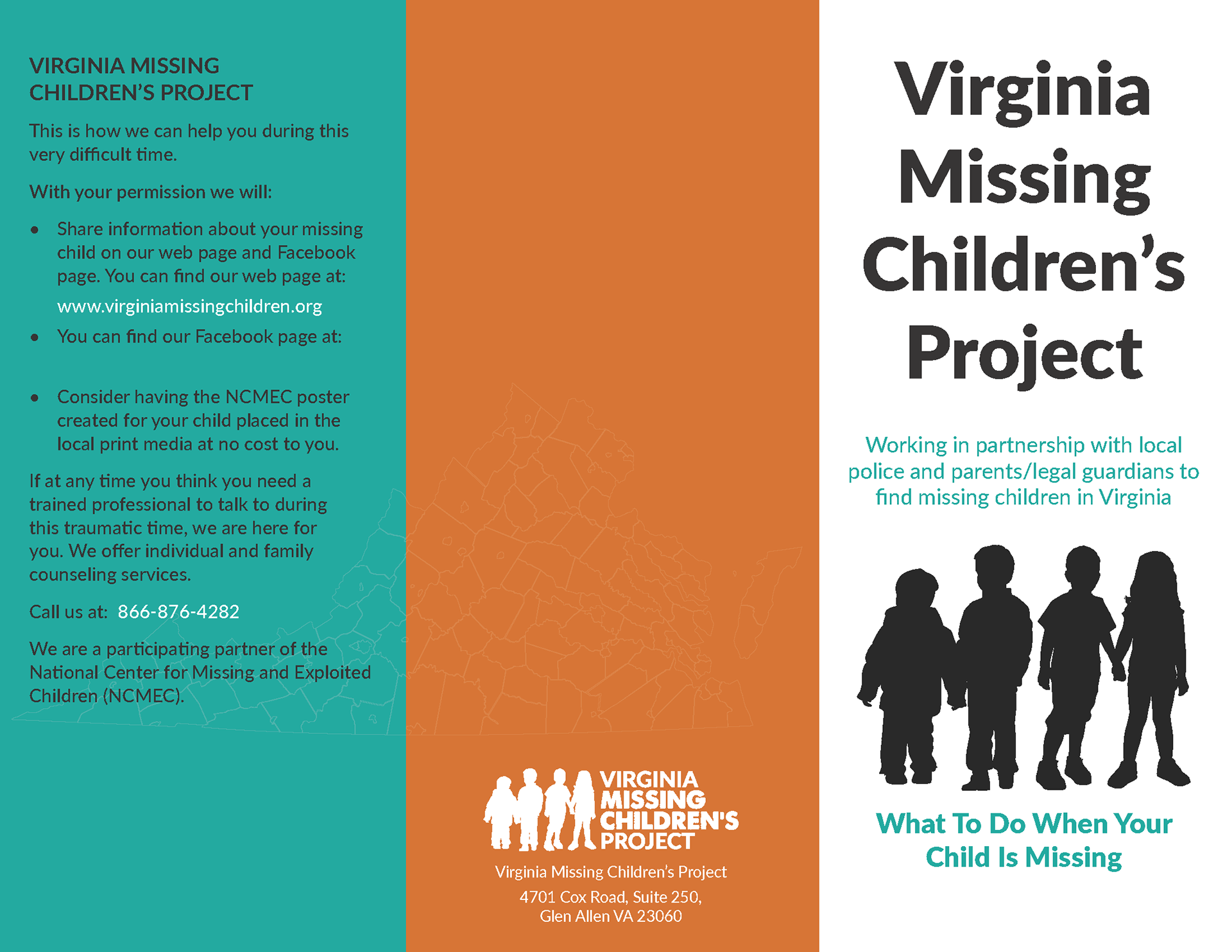 We are a Virginia non-profit that is committed to helping families and law enforcement in the Greater Richmond area locate missing children.